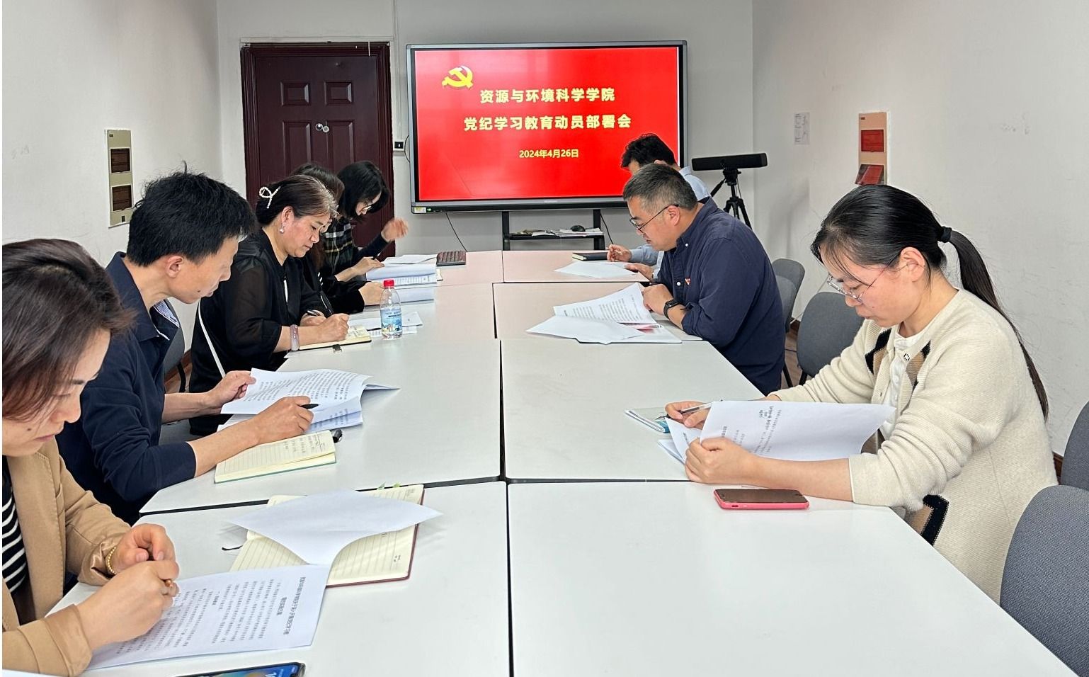 委员会关于深入开展党纪学习教育的实施方案》,集体研学了南京农业大学2024年全面从严治党工作会议警示教育材料。