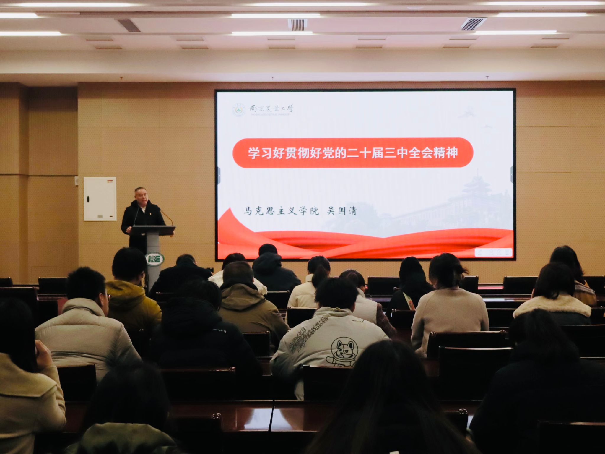 为深入学习贯彻党的二十届三中全会精神,学院于12月10日在滨江报告厅举办主题宣讲会。本次宣讲会特别邀请马克思主义学院吴国清教授作为主讲老师,学院全体师生党员参加。