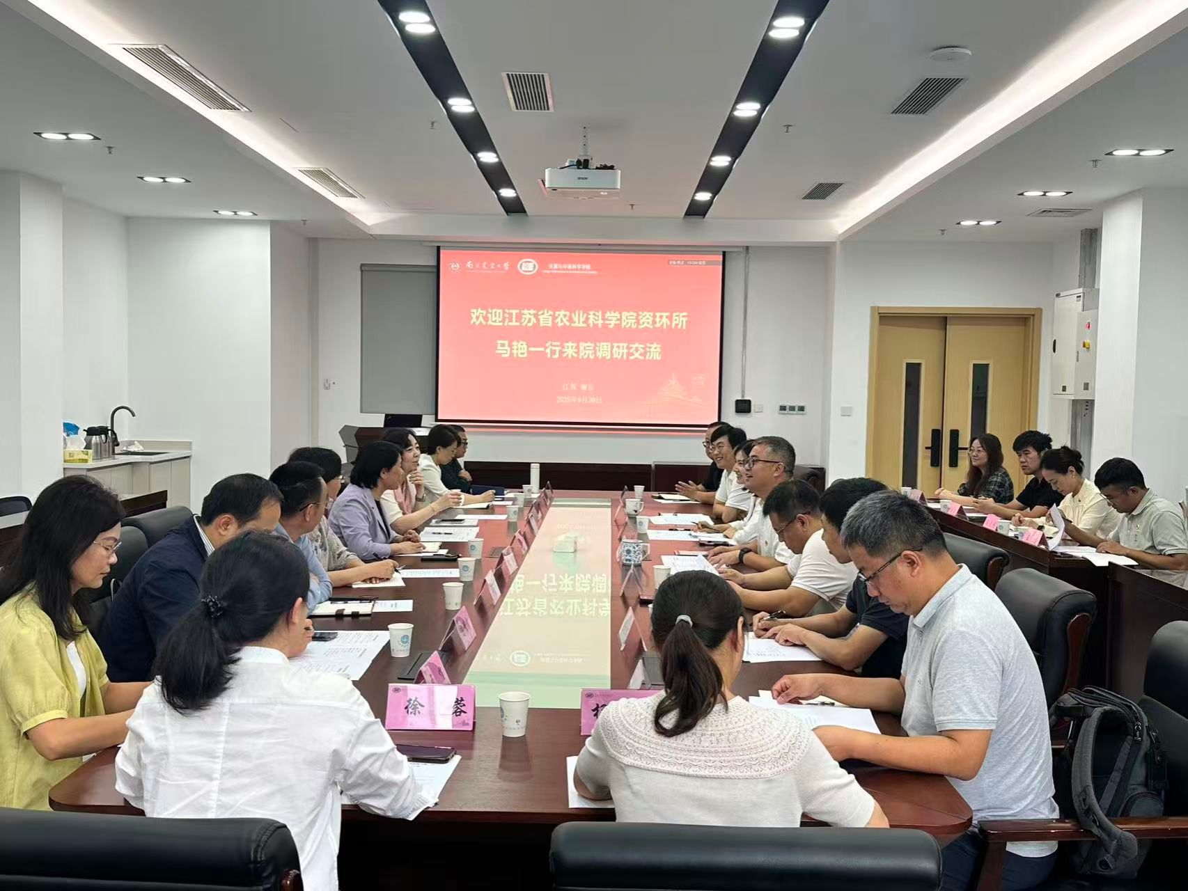 9月30日上午,江苏省农业科学院农业资源与环境研究所马艳一行12人来我院调研交流,双方就党建工作、班子建设经验与做法、人才培养、师资建设、成果培育等方面进行了深入交流,同时商议了聘请我院教师为资环所“资环大课堂”授课的事宜。座谈会由学院党委书记李荣主持,学院领导班子成员及全体教师党支部书记、副书记参加座谈。