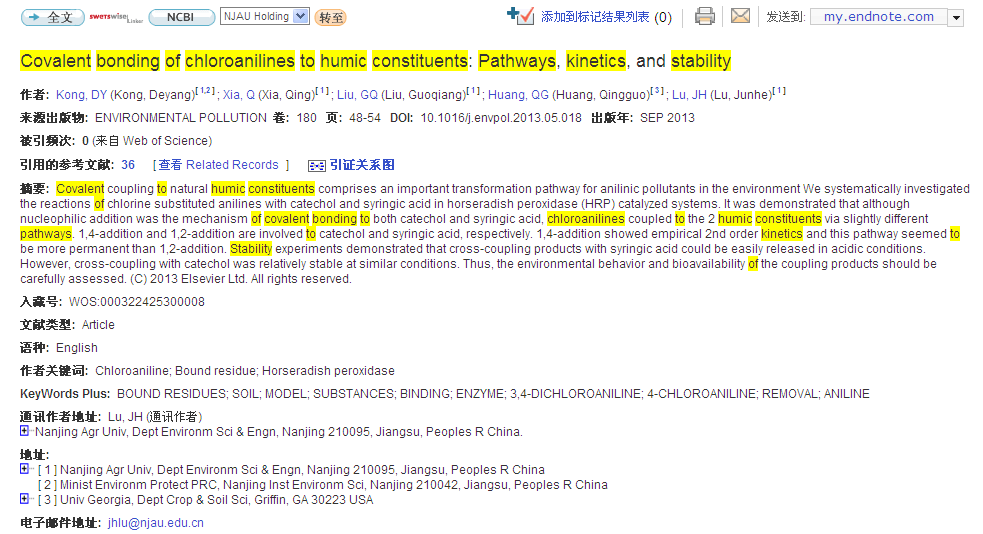 上一篇:Covalent bonding of chloroanilines to humic constituents: Pathways, kinetics, and stability