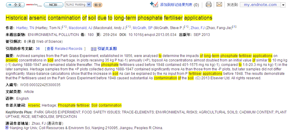 下一篇:Historical arsenic contamination of soil due to long-term phosphate fertiliser applications