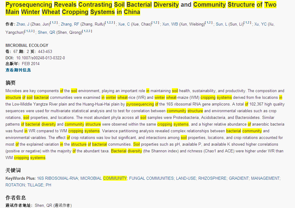 下一篇:Pyrosequencing Reveals Contrasting Soil Bacterial Diversity and Community Structure of Two Main Winter Wheat Cropping Systems in China