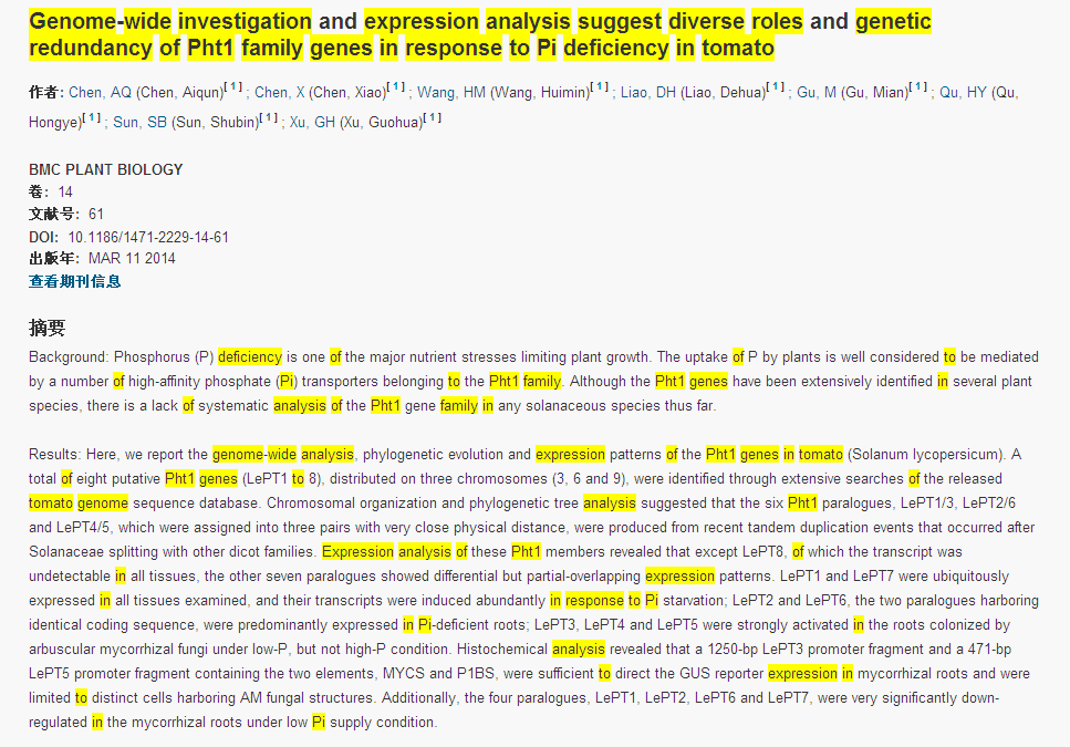 下一篇:Genome-wide investigation and expression analysis suggest diverse roles and genetic redundancy of Pht1 family genes in response to Pi deficiency in tomato