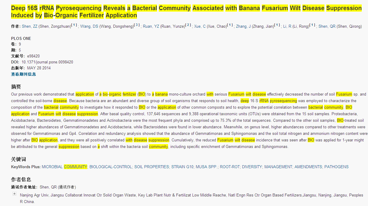 Deep 16S rRNA Pyrosequencing Reveals a Bacterial Community Associated with Banana Fusarium Wilt Disease Suppression Induced by Bio-Organic Fertilizer Application