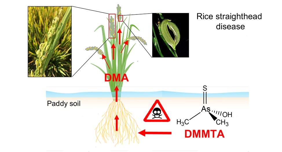 近日,南京农业大学汪鹏教授团队在“Environmental Science and Technology”以封面文章发表了题为“Dimethylmonothioarsenate (DMMTA) is a potent arsenic species causing rice straighthead disease”的研究论文,揭示了DMMTA对水稻的高毒性及其诱发水稻直穗病的风险。